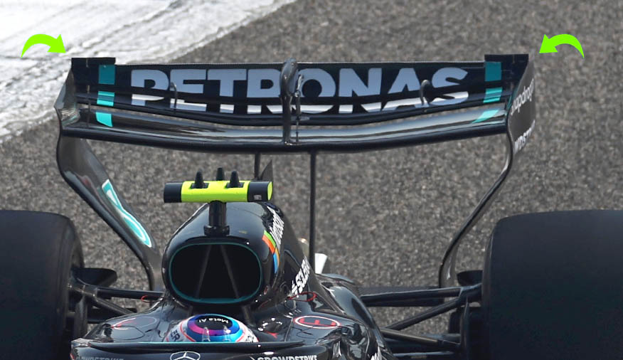 Diverso l’approccio della Mercedes-AMG Petronas Formula One Team, che ha introdotto piccoli profili aggiuntivi laterali sull’ala posteriore in ricerca di maggiore carico.