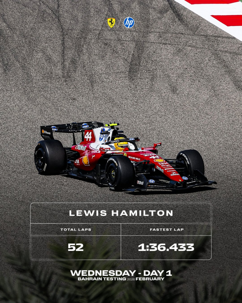 Lewis Hamilton ha chiuso la propria mezza giornata in quarta posizione con 1:36.433, in una sessione dedicata principalmente alla raccolta dati e alla comprensione del nuovo pacchetto tecnico Ferrari 2026. Da segnalare anche un leggero bloccaggio in curva 1 senza conseguenze.