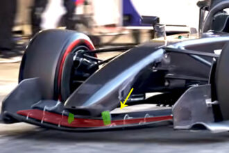 L’ala posteriore non ripropone invece alcun particolare simile alle precedenti versioni. I nuovi regolamenti hanno imposto tre modifiche rispetto allo scorso anno, richiedendo una corsa più ampia del sistema DRS, una minore profondità dell’ala posteriore e, infine, la rimozione del profilo alare inferiore. Quest’ultima modifica ha richiesto la realizzazione di una struttura in posizione centrale per sostenere il profilo principale dell’ala. Per regolamento, l’ala anteriore è stata ridotta di 75 millimetri su entrambi i lati, al fine di renderla meno vulnerabile alle collisioni con altri veicoli o con le barriere a bordo pista. Questo cambiamento, probabilmente uno dei meno percepiti nel confronto con una monoposto 2013, ha avuto un profondo effetto sull’aerodinamica del veicolo. Le ali anteriori utilizzate a partire dal 2009 erano state ideate e realizzate per arrivare a coprire la superficie davanti agli pneumatici anteriori, al fine di massimizzare il carico aerodinamico. Il cambiamento del regolamento 2014, anche se di appena 75 millimetri, ha reso quindi necessaria una revisione completa dell’ala anteriore.