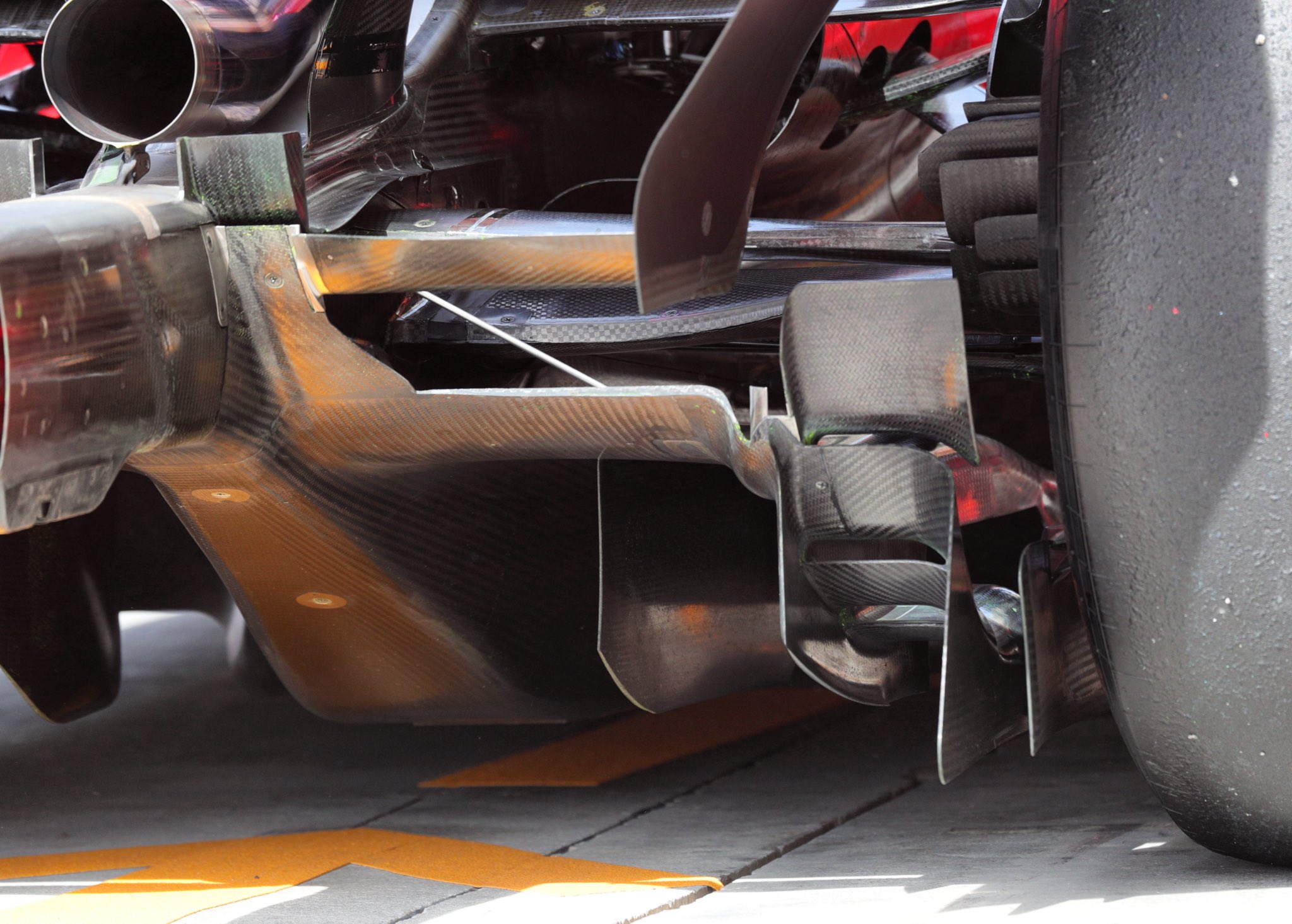 Alcuni team hanno cercato di replicarne l’effetto sfruttando elementi come i bracci della sospensione posteriore. Ferrari, invece, sembra aver scelto una strada diversa: estremizzare la porzione centrale del diffusore per compensare in modo diretto la perdita di contributo aerodinamico derivante dalla diversa configurazione posteriore.