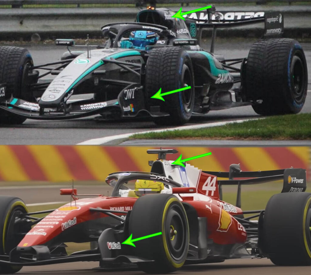 Nonostante queste differenze, gli endplate laterali, la curvatura del marciapiede e la piccola pinnetta deviatrice di flusso mostrano similitudini tra le due vetture, sebbene queste aree possano essere soggette a modifiche e aggiornamenti durante la stagione.