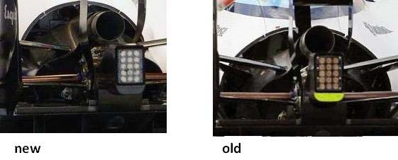 Iniziamo con gli sfoghi della Williams che appaiono molto piu’ rastremati verso la parte posteriore, concedendo al flusso di chiudere meglio la sua traiettoria attorno al veicolo, proprio prima di raggiungere il diffusore e il monkey sit.
